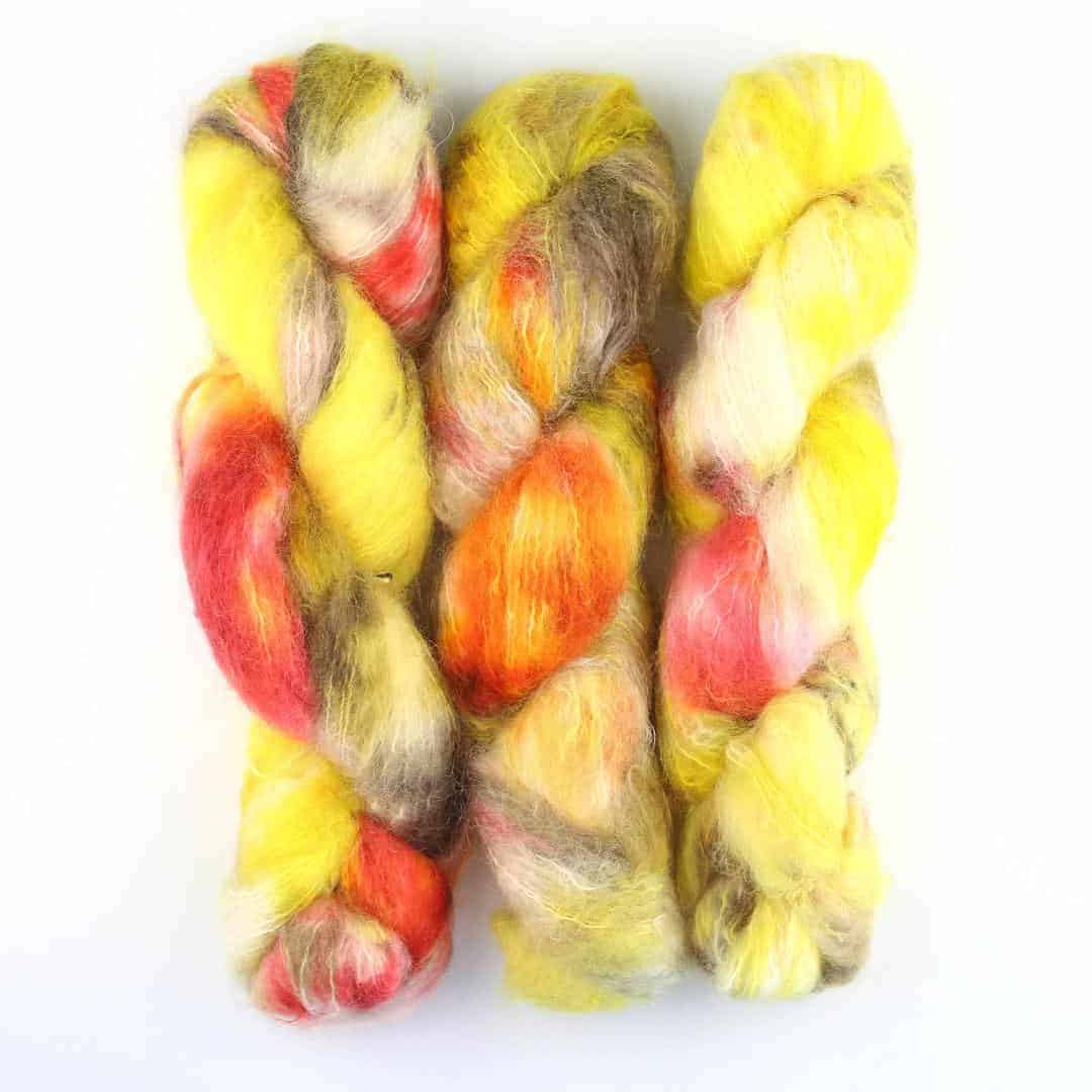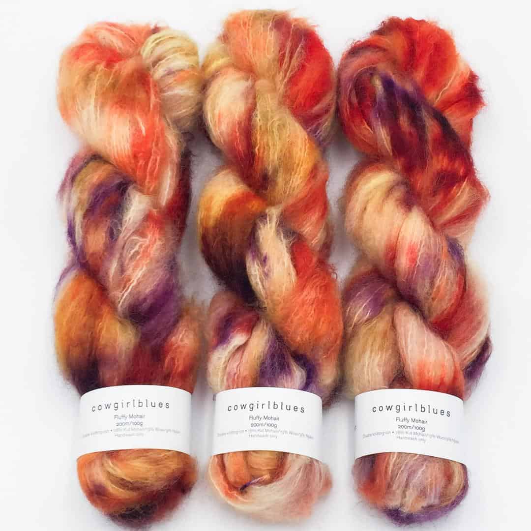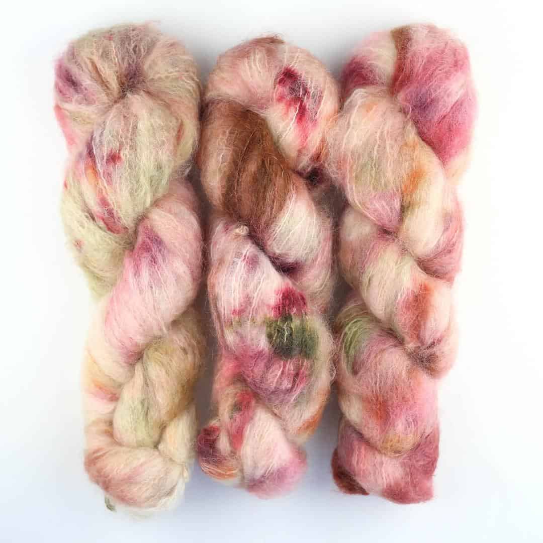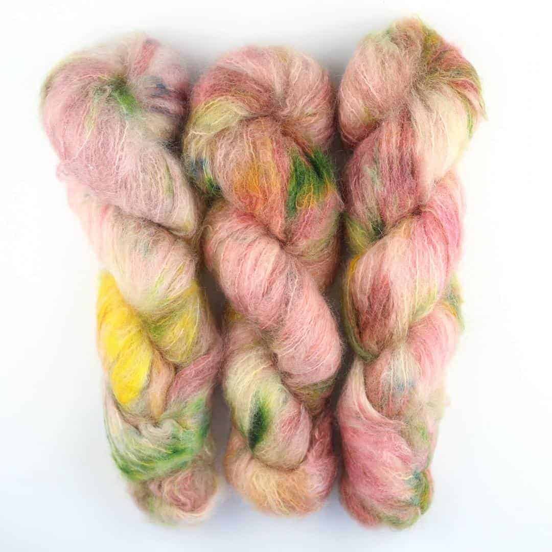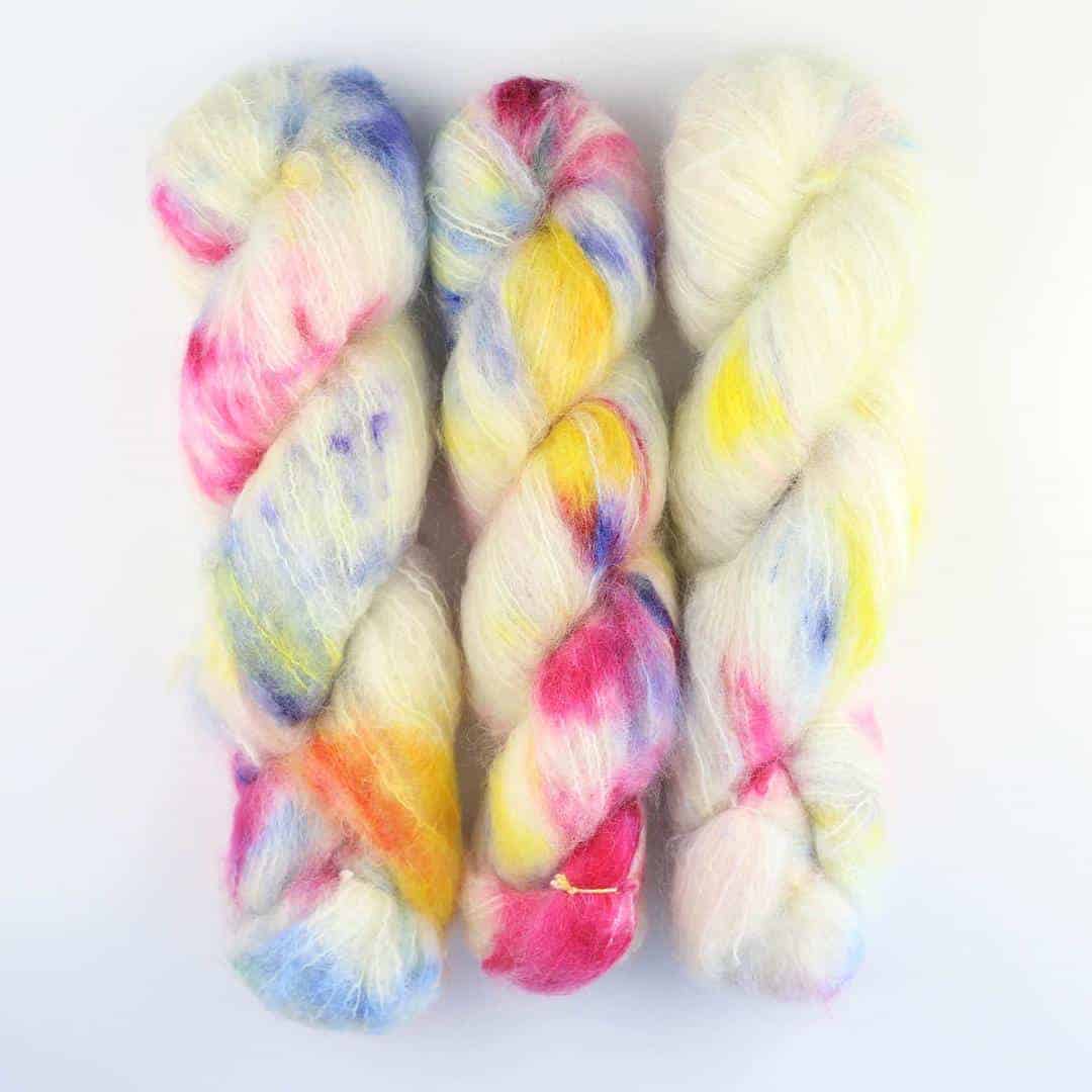 Handgefärbtes Fluffy Mohair Blend aus Südafrika, ideal für flauschige Strickprojekte.