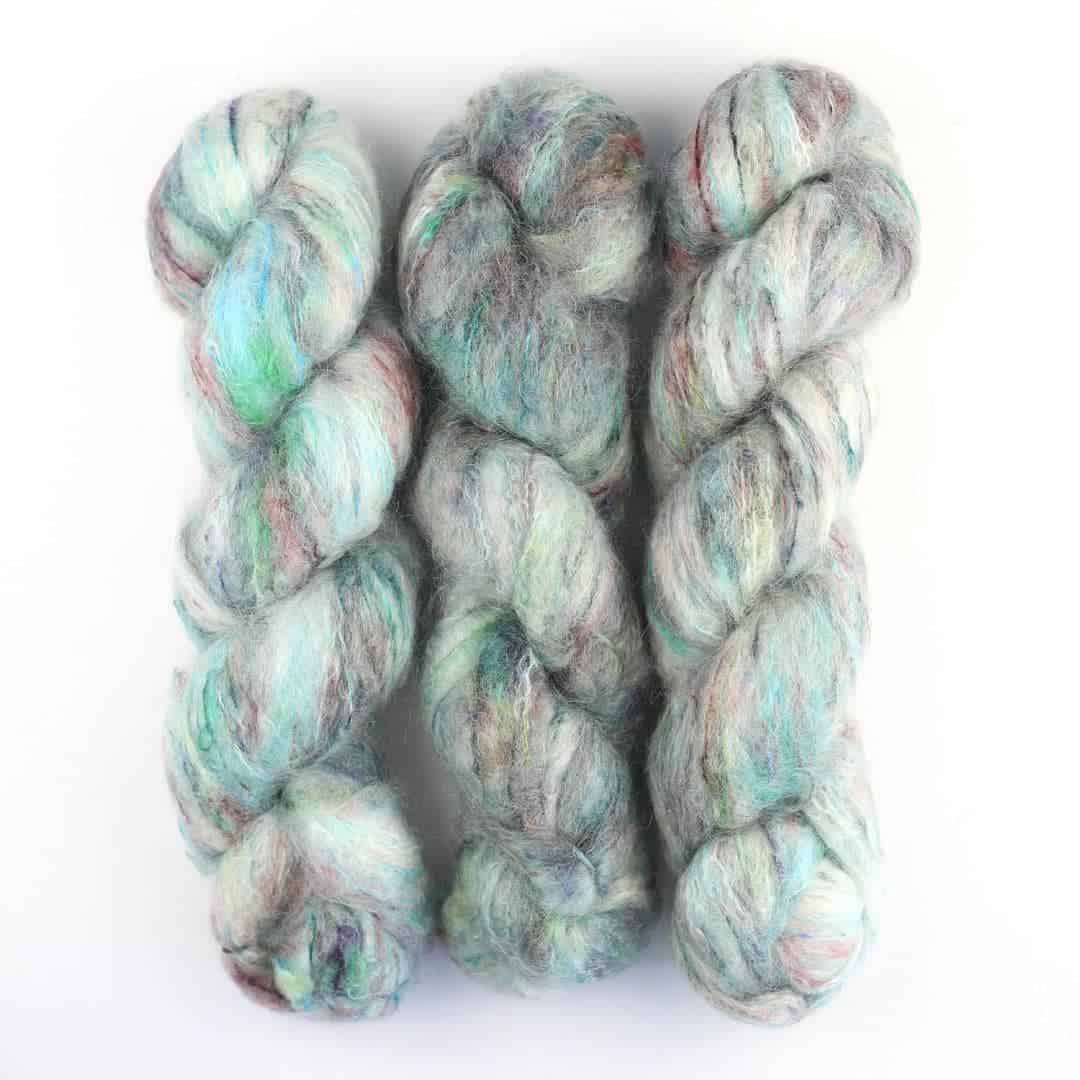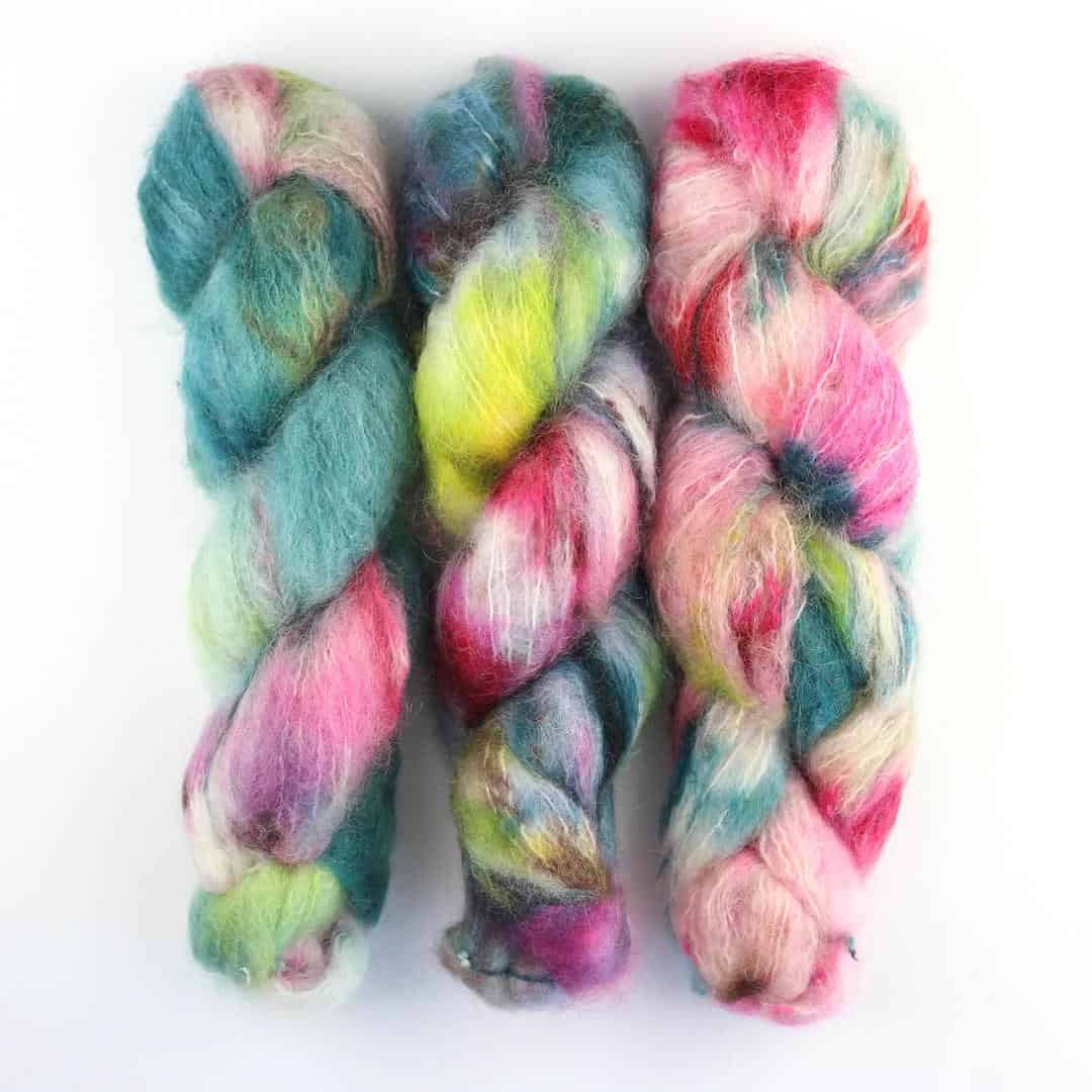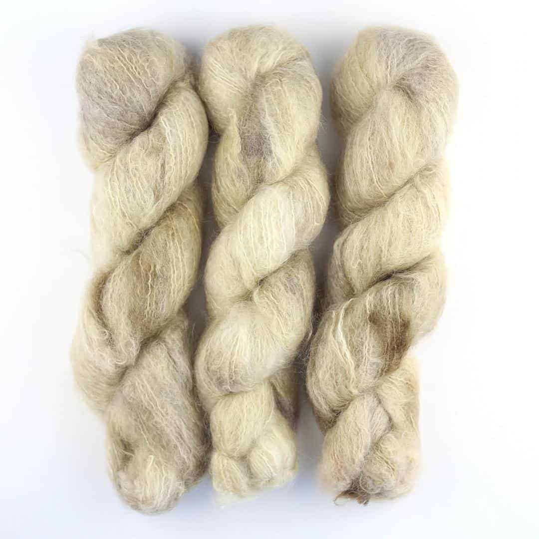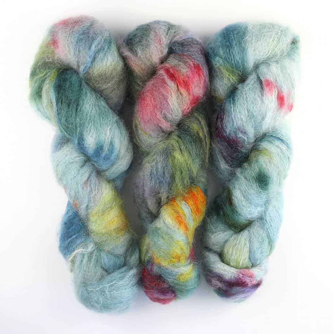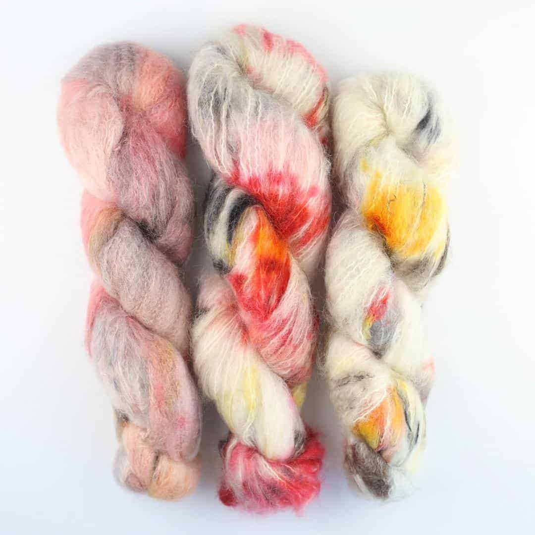 Handgefärbtes Fluffy Mohair Blend aus Südafrika, ideal für flauschige Strickprojekte.