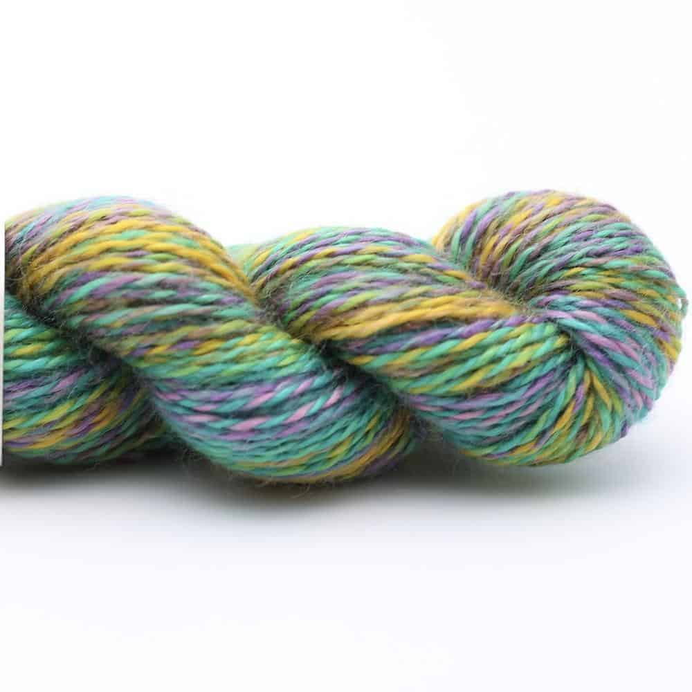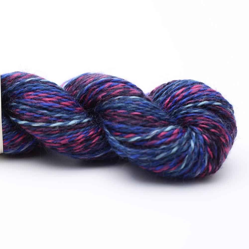 Diese sehr feine und mercerisierte Merinowolle aus Südamerika besteht zu 100% aus mulesingfreier Wolle. Durch die besondere Färbetechnik entstehen überraschende, gegenläufige Farbverläufe, die jedes Strickprojekt zum Hingucker machen. Das Garn eignet sich hervorragend für Pullover und kann sowohl einzeln als auch in Kombination mit Uni-Farben für winterliche Accessoires verarbeitet werden. Es ist so weich, dass es auch angenehm um den Hals oder auf dem Kopf getragen werden kann. Ein besonders beliebtes Modell für dieses Garn ist das Dreieckstuch ‚Nightshift‘ von Andrea Mowry.