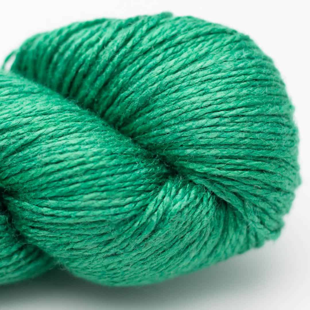 Bitte beachten Sie, dass die glatte Struktur nur mit der richtigen Pflege erhalten bleibt: Handwäsche ist notwendig. Pflanzliche Fasern wie Seide haben keine eigene Elastizität und können sich etwas aushängen. Dies lässt sich durch ein entsprechendes Strickmuster oder durch Berücksichtigung von 5 bis 10 % „Nachlängen“ ausgleichen.