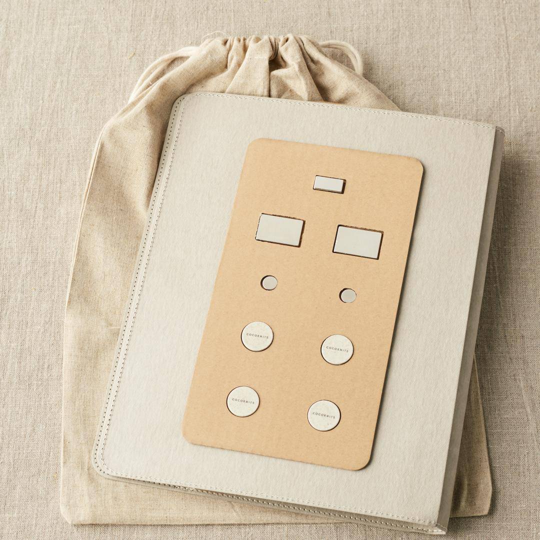 Unser faltbarer Halter für Papieranleitungen ist ein praktisches und vielseitiges Tool für jeden Handarbeits- oder Kochbegeisterten. Hergestellt aus waschbarem Papier, bietet dieser Halter eine einfache Möglichkeit, Strickschriften, Anleitungen oder Rezepte zu lesen. Die eine Seite des Halters lässt sich auffalten und stufenlos mit Hilfe von Magneten verstellen. Die starken Magnete fixieren Papierausdrucke oder kleine Metall-Tools sicher an dem Halter, der einen Metallkern im Inneren hat. Die Fächer an der Innenseite bieten ausreichend Platz zum Verstauen verschiedener Papiere. Das Set umfasst den Halter, vier runde Magnete mit PLA-Beschichtung aus fermentierten Pflanzenfasern, zwei kleine, unbeschichtete Magnete für Accessoires wie Maschenmarkierer und drei starke, unbeschichtete Magnete zur Stabilisierung des Ständers. Geliefert wird das Set in einem attraktiven Leinenbeutel.