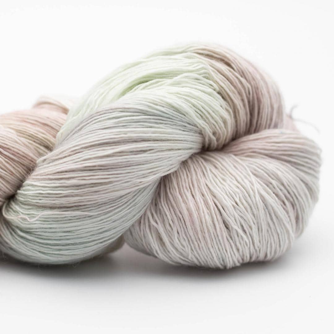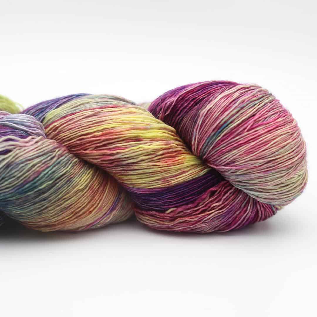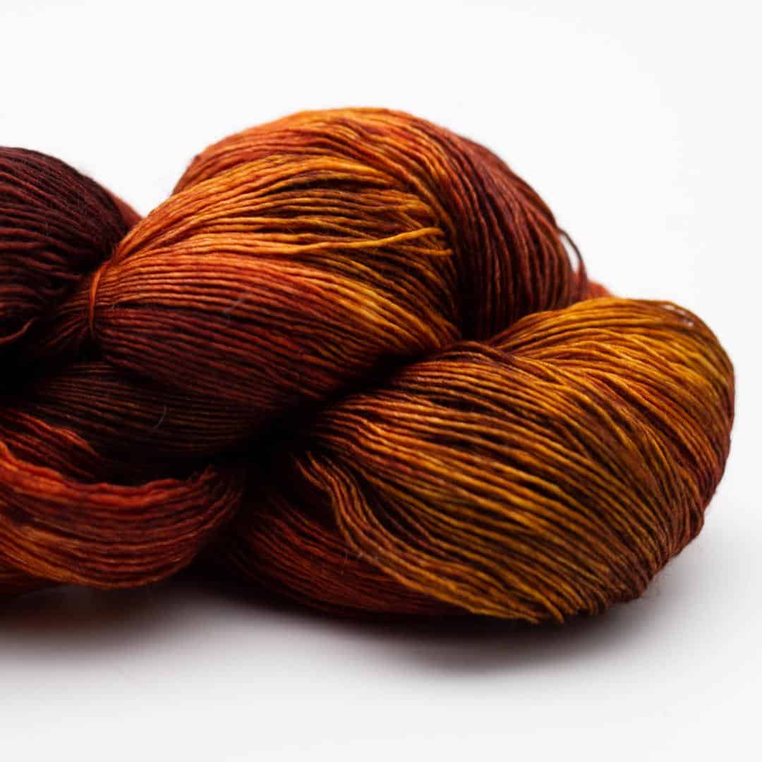 Seidige, handgefärbte Merinowolle mit leichtem Glanz, ideal für Strick- und Häkelprojekte.
