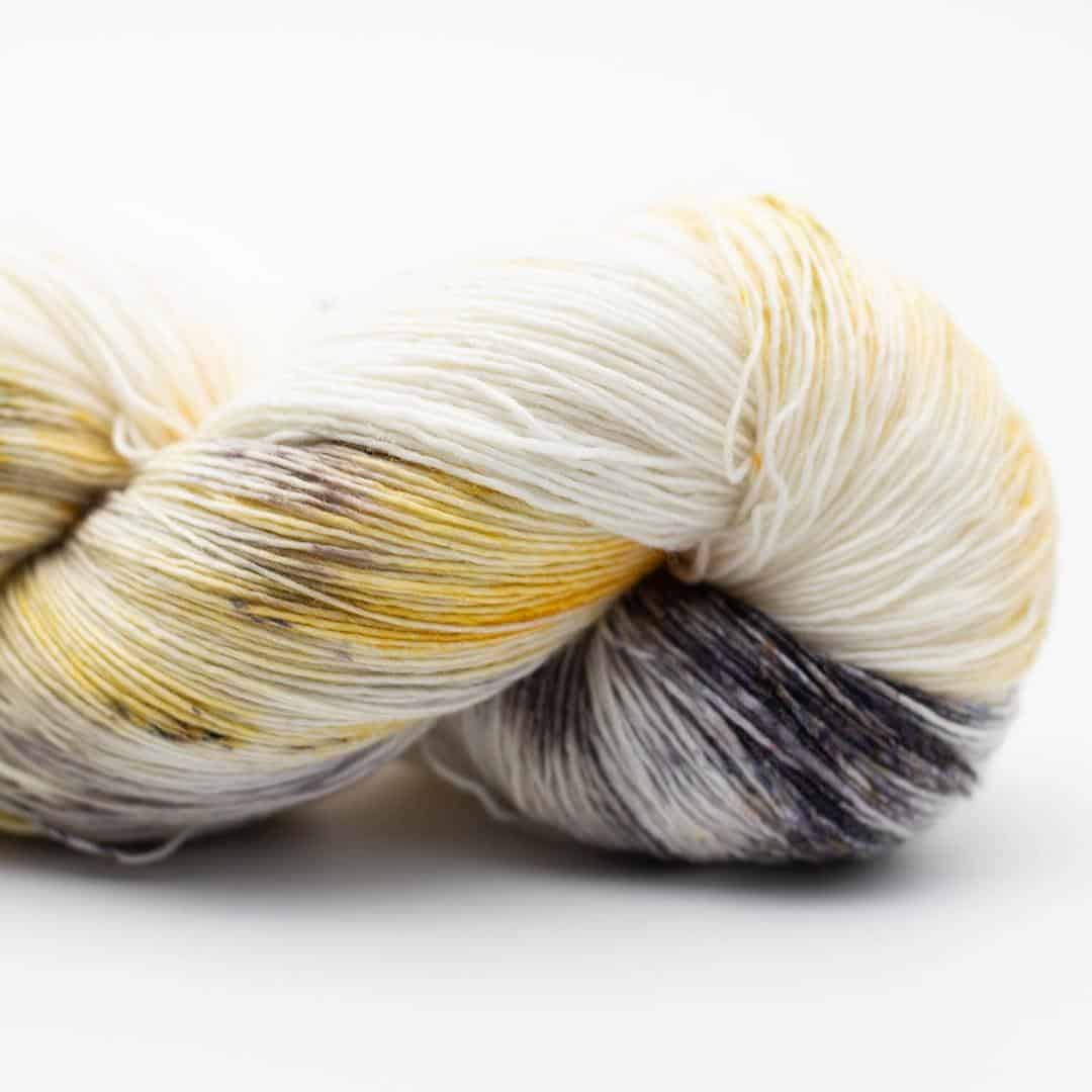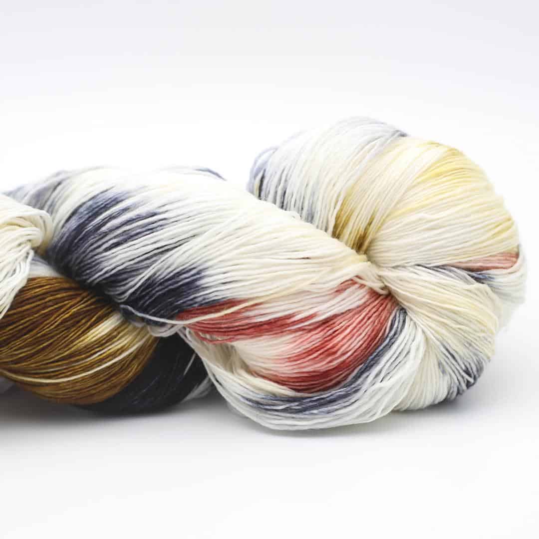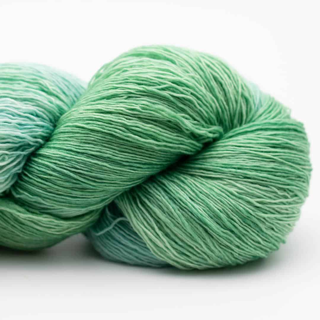 Seidige, handgefärbte Merinowolle mit leichtem Glanz, ideal für Strick- und Häkelprojekte.