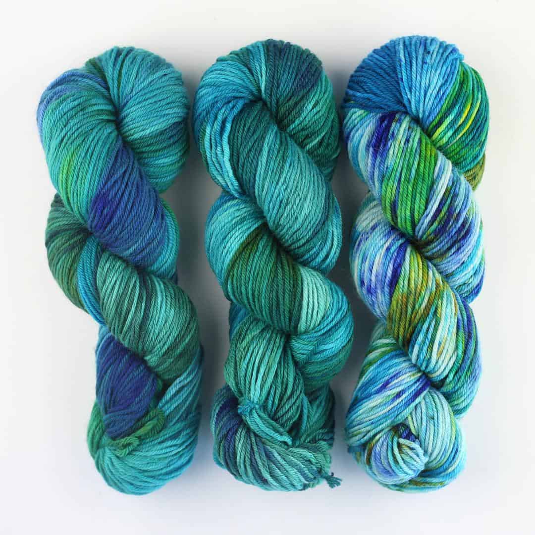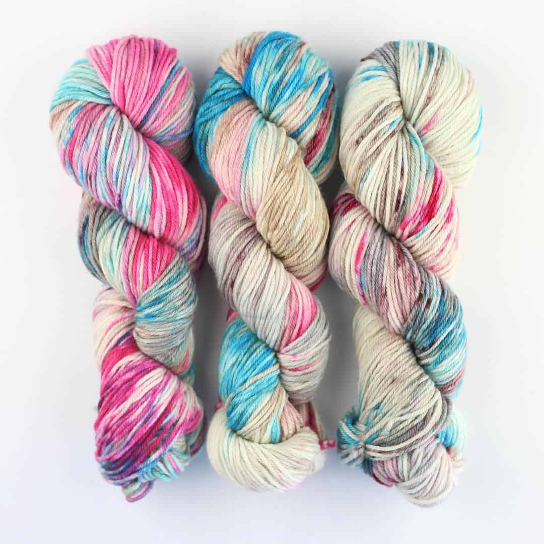 Handgefärbtes Merino DK Garn aus Südafrika, ideal für vielseitige Strickprojekte.
