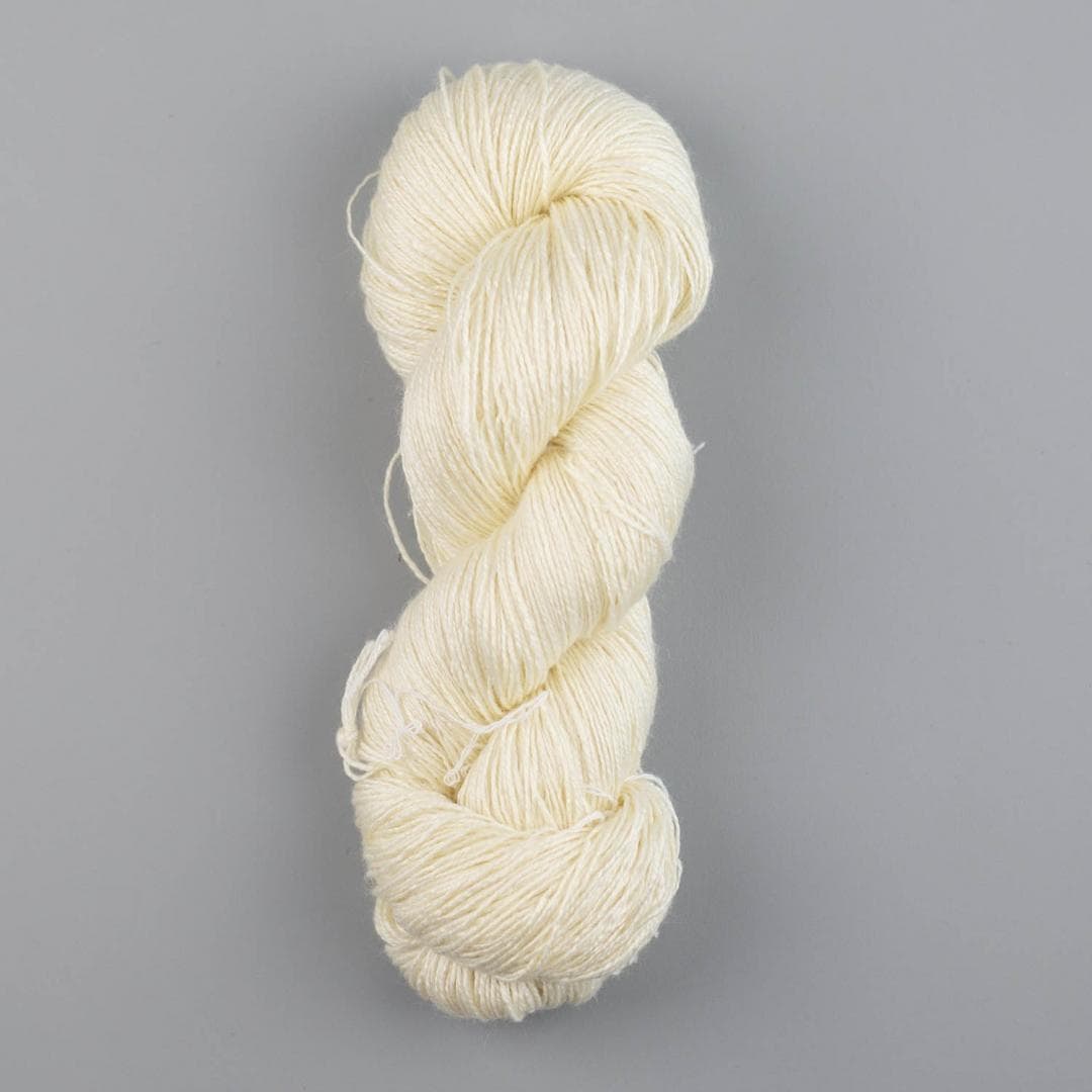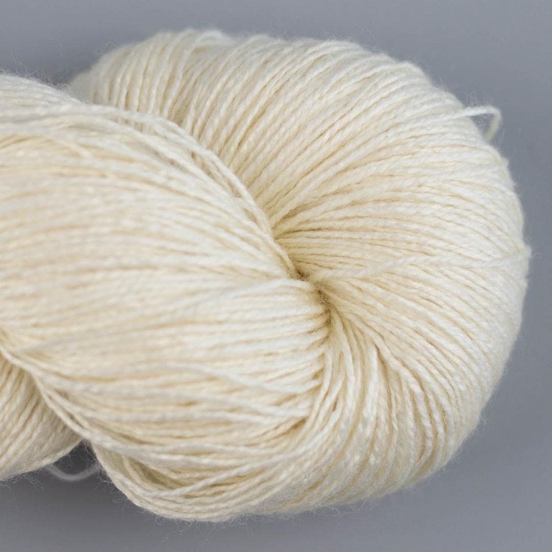 Ungefärbtes Garn aus Merinowolle und Maulbeerseide, ideal für vielseitige Projekte.