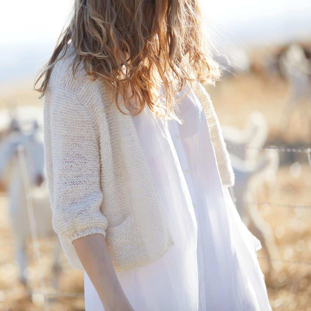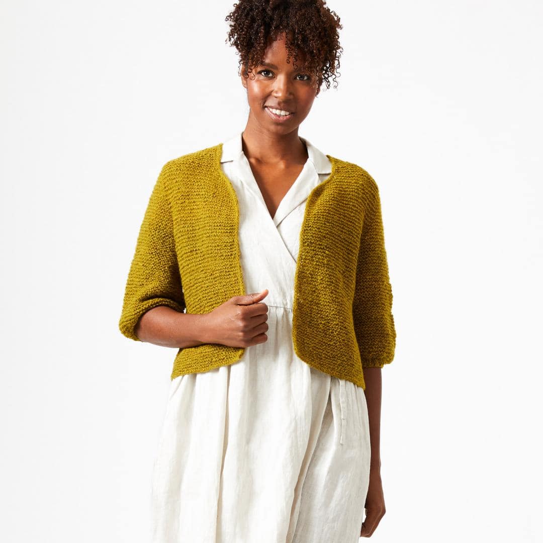 DieserCardigan ist ein leichter, offener Cardigan, der mit einer I-Cord-Kante verziert ist. Diese beginnt am hinteren Halsausschnitt und wird nahtlos nach unten und entlang der Vorderkanten gestrickt. Der Cardigan ist in den Größen S bis 4X verfügbar und bietet eine bequeme Passform für verschiedene Körpertypen. Die Brustweite reicht von 91,5 cm bis 152 cm, während die Länge zwischen 42,5 cm und 53 cm variiert. Die grüne Version wird mit Nomad Noos High Mountain Yak in der Farbe ‚Enter the Green Area‘ gestrickt, während die weiße Version mit Nomad Noos Smooth Sartuul in der Farbe ‚Altai White‘ hergestellt wird. Empfohlene Nadeln sind US 8 für den Körper und die Ärmel, US 5 für die Ärmelbündchen und US 2-3 für das Abketten. Dieser Cardigan ist ideal für diejenigen, die ein stilvolles und dennoch bequemes Kleidungsstück suchen. Die passende Wolle ist in unserem Shop erhältlich.