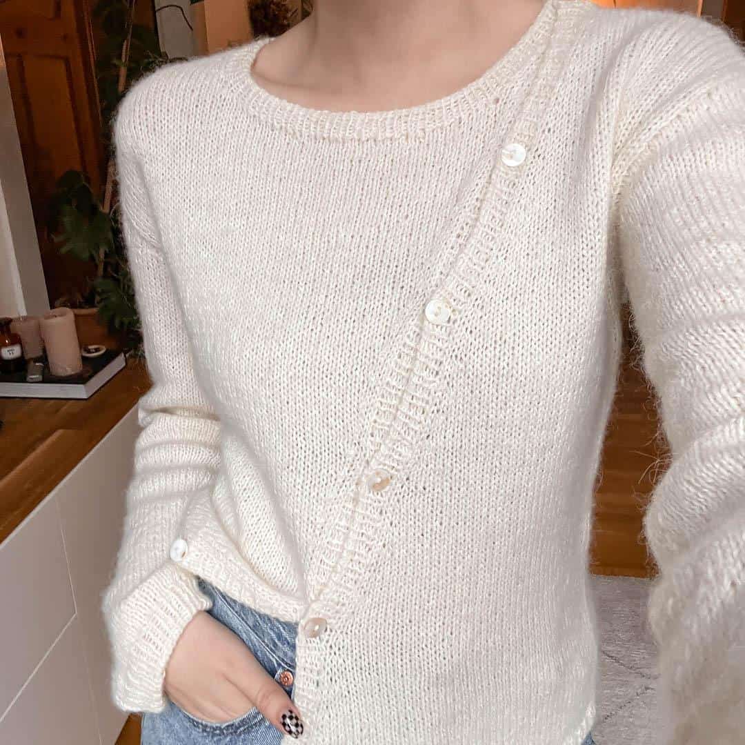 Anspruchsvoller Pullover mit asymmetrischer Knopfleiste und verschiedenen Garnoptionen für alle Jahreszeiten.
