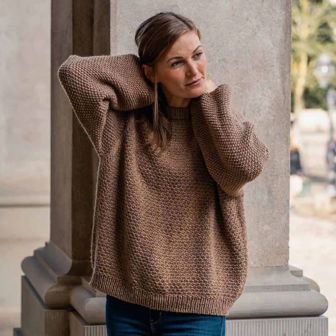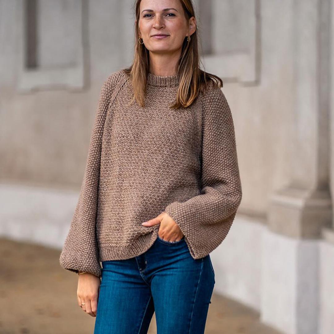Dieser Pullover wird nahtlos von oben nach unten gestrickt, was das Zusammennähen überflüssig macht. Das Design von Wieseknit überzeugt durch seinen Oversized-Schnitt und bietet in drei verschiedenen Größen genügend Spielraum für optimalen Tragekomfort. Die verwendeten Garne, Big Bio Balance und Babyalpaca von BC Garn, sorgen für ein angenehmes Tragegefühl und hervorragende Wärmeisolierung. Empfohlene Nadeln sind Rundstricknadeln in zwei Stärken, 6 mm und 4,5 mm, abhängig von der gewünschten Länge. Der Pullover eignet sich ideal für Strickerinnen, die ein stilvolles und gemütliches Kleidungsstück selbst herstellen möchten. Die Anleitung gibt es direkt bei der Designerin, die passende Wolle bei uns.