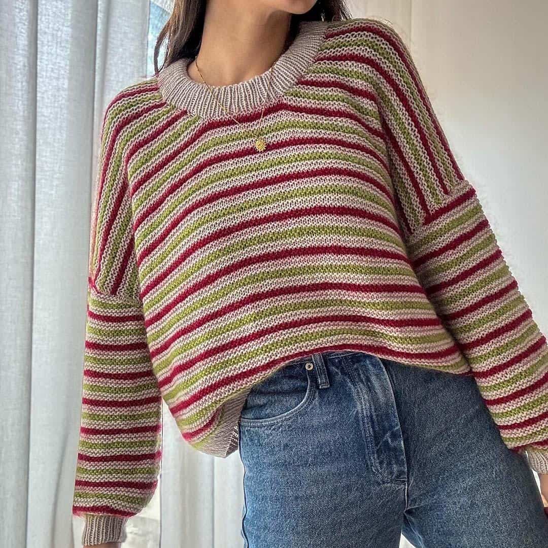 Nahtloser Pullover mit Streifenmuster, Anleitung nur in englischer Sprache: