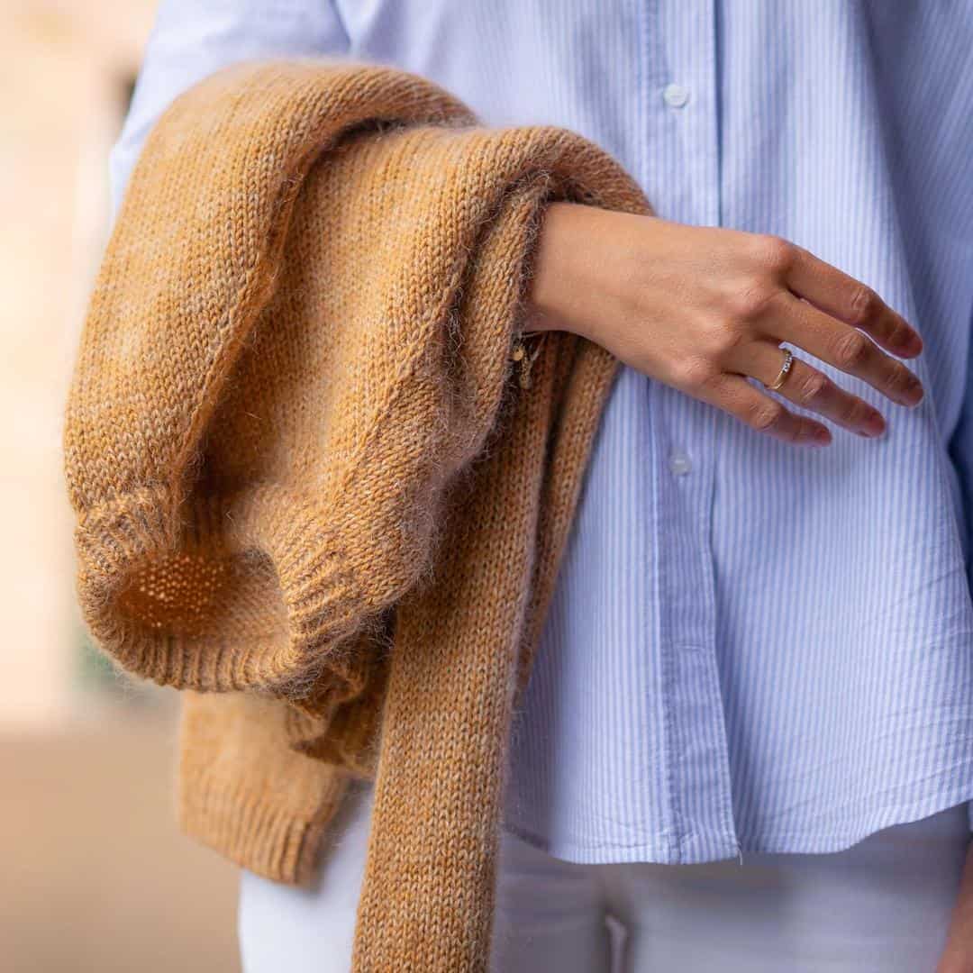 Wenn du diesen stilvollen Pullover stricken möchtest, kannst du die passende Wolle direkt in unserem Online-Shop bestellen.
