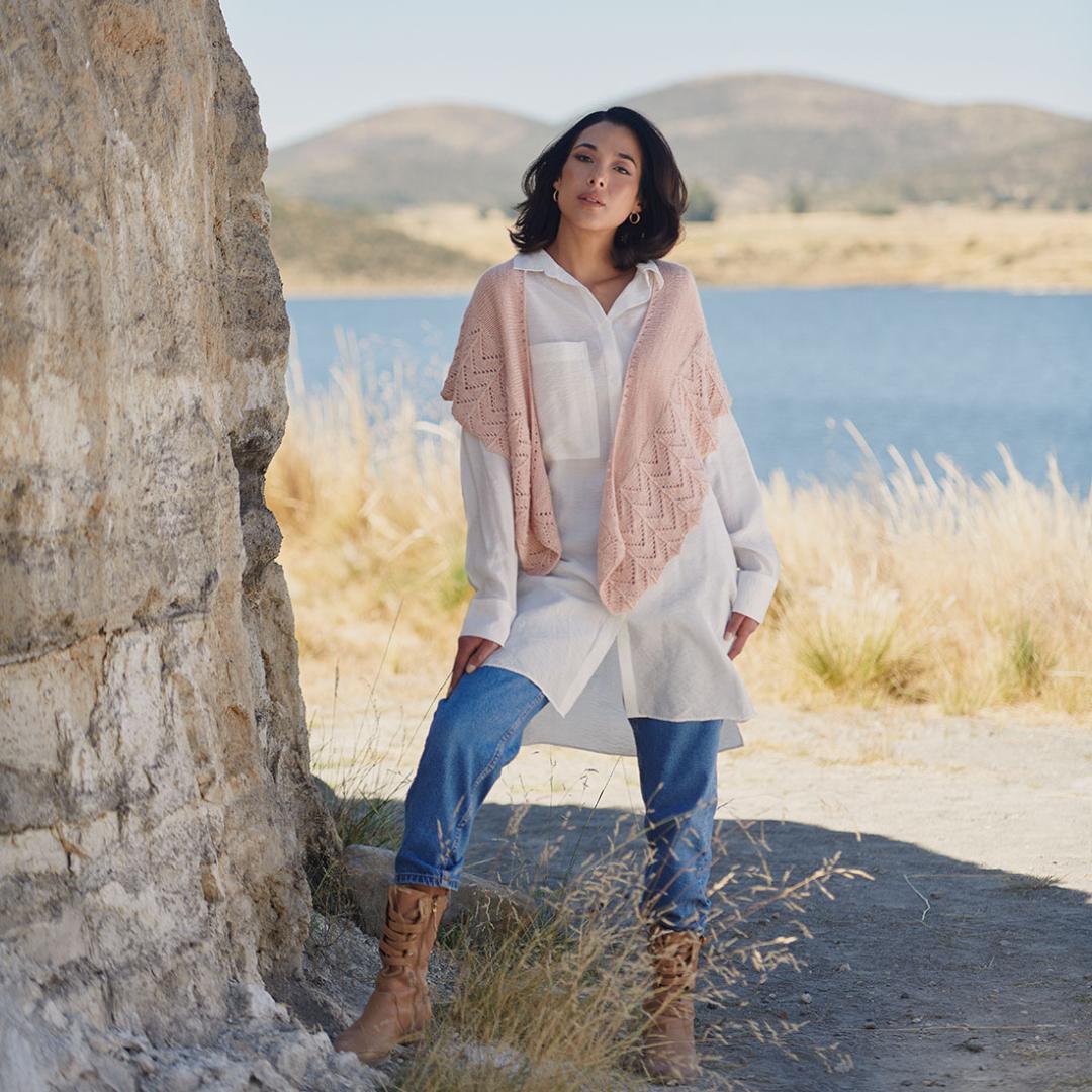 inkl. 19 % MwSt.; PDF Download sofort verfügbar.Eleganter Schal aus Amano Mayu Garn mit Lochmuster und glatter Struktur.