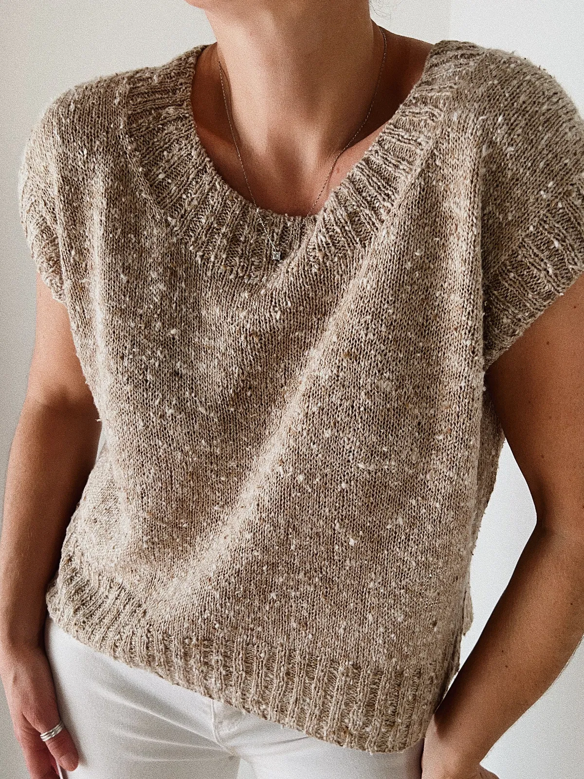 Das SURI Shirt wird mit Tussah Tweed von BC Garn gestrickt – einem 100 % Seidengarn mit feinem Tweed-Effekt. Tussah-Seide ist etwas fester als Maulbeerseide und bietet eine edle, leicht rustikale Textur mit einem weichen Fall. Das Garn ist atmungsaktiv, temperaturausgleichend und perfekt für sommerliche Strickstücke.