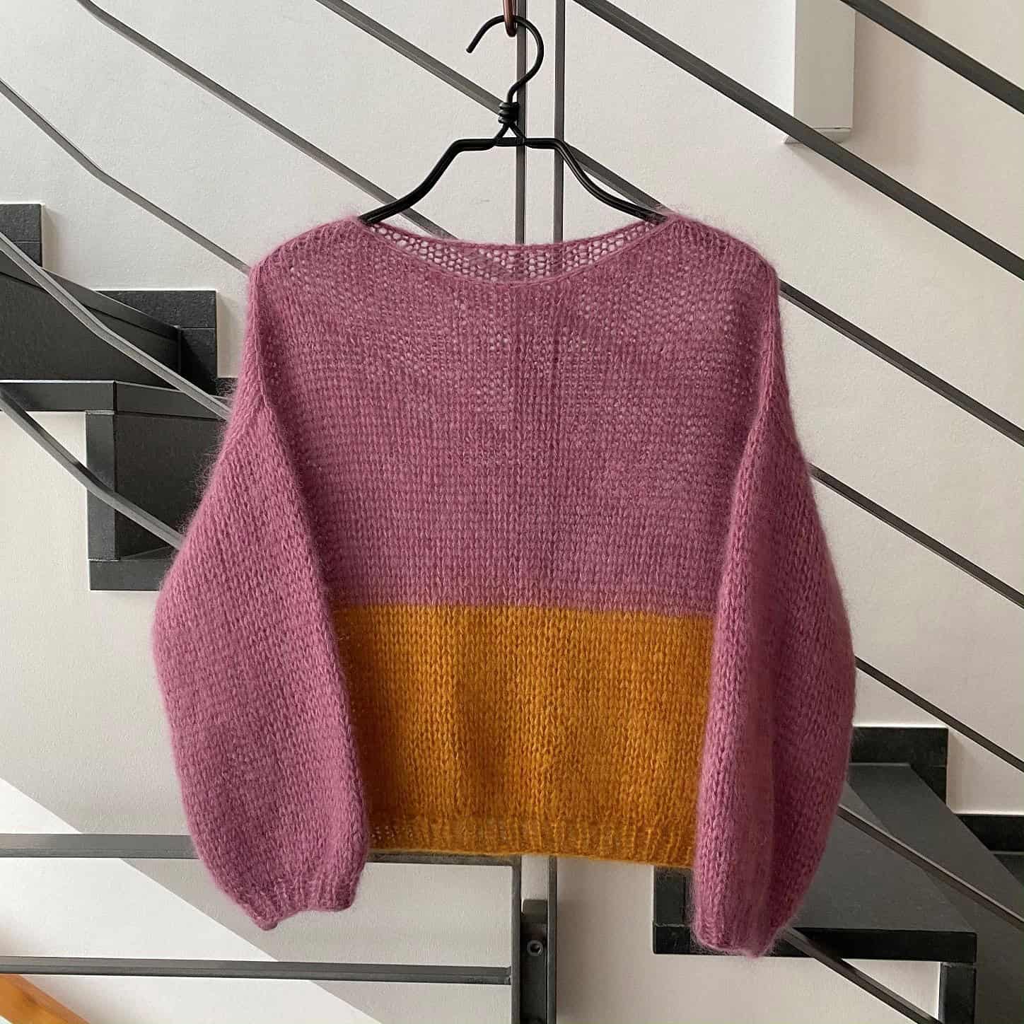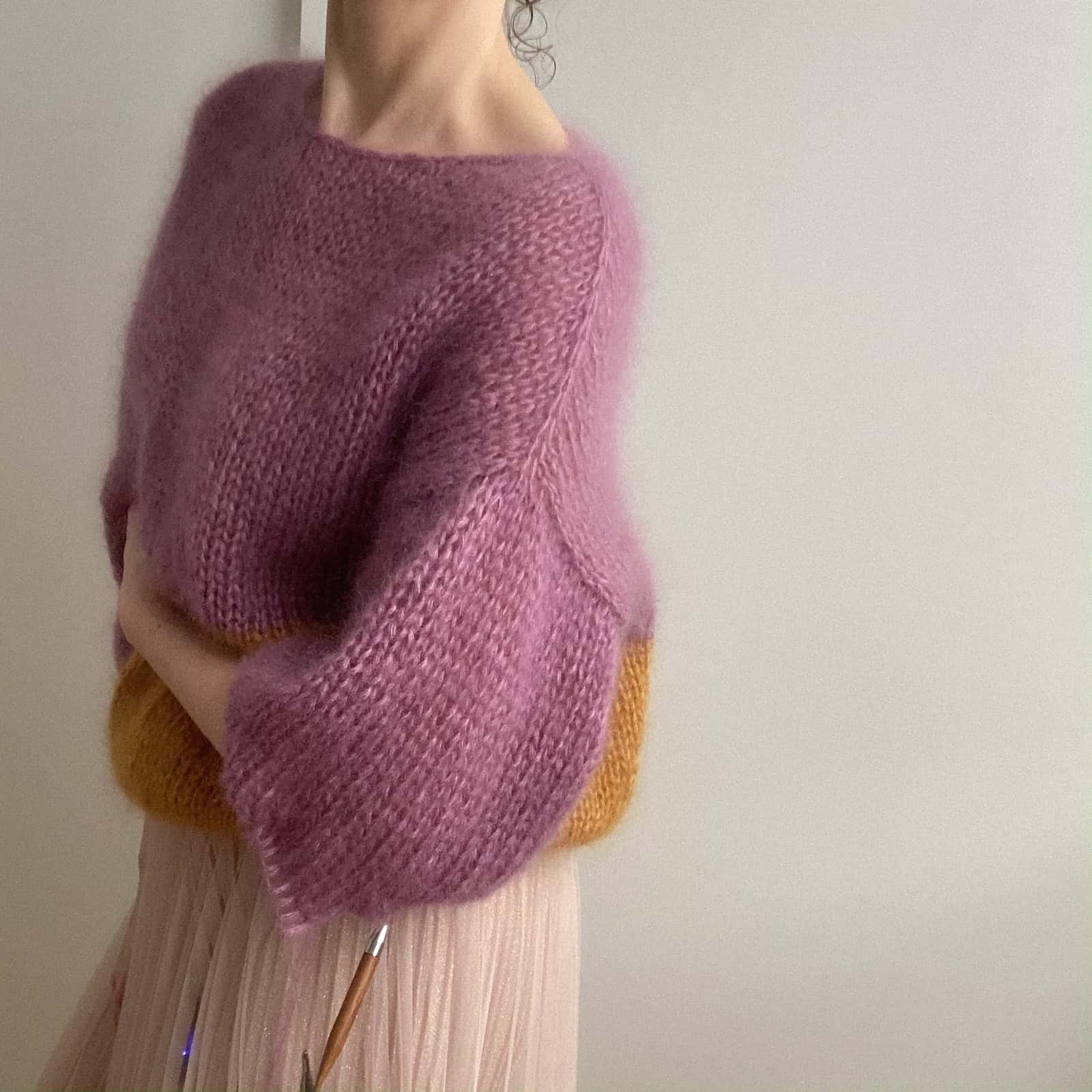 Der Jumper Marta von Tanja Koenigs ist ein kurzer, kastiger Pullover mit 7/8-Ärmeln, der in einem Stück von oben nach unten gestrickt wird.