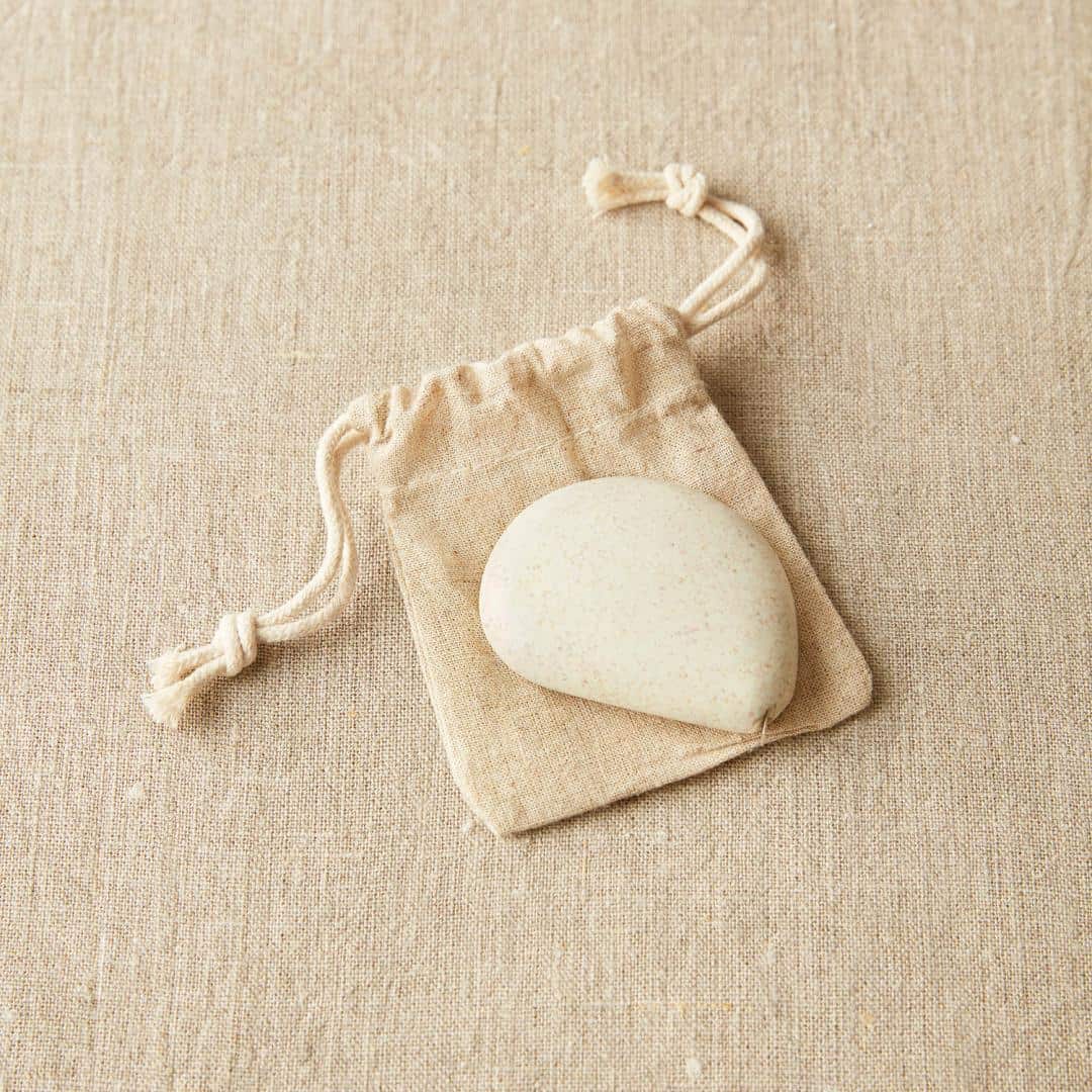 Dieses elegante Maßband ist in einem biologisch abbaubaren Polyactid-Gehäuse untergebracht. Das Maßband selbst ist in einem praktischen Kordelzugbeutel aus Leinen verpackt, was die Aufbewahrung und den Transport erleichtert. Dank des integrierten Metallstreifens am Ende des Bandes bleibt es sicher verstaut und lässt sich leicht herausziehen, ohne in das Gehäuse zurückzufallen. Dieses Maßband ist in drei verschiedenen Farben erhältlich und eignet sich perfekt für präzise Messungen im Handarbeitsalltag.