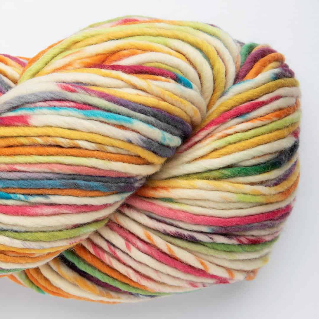 Handgefärbte Highlandwolle aus Peru, weich und voluminös, ideal für vielseitige Strickprojekte.